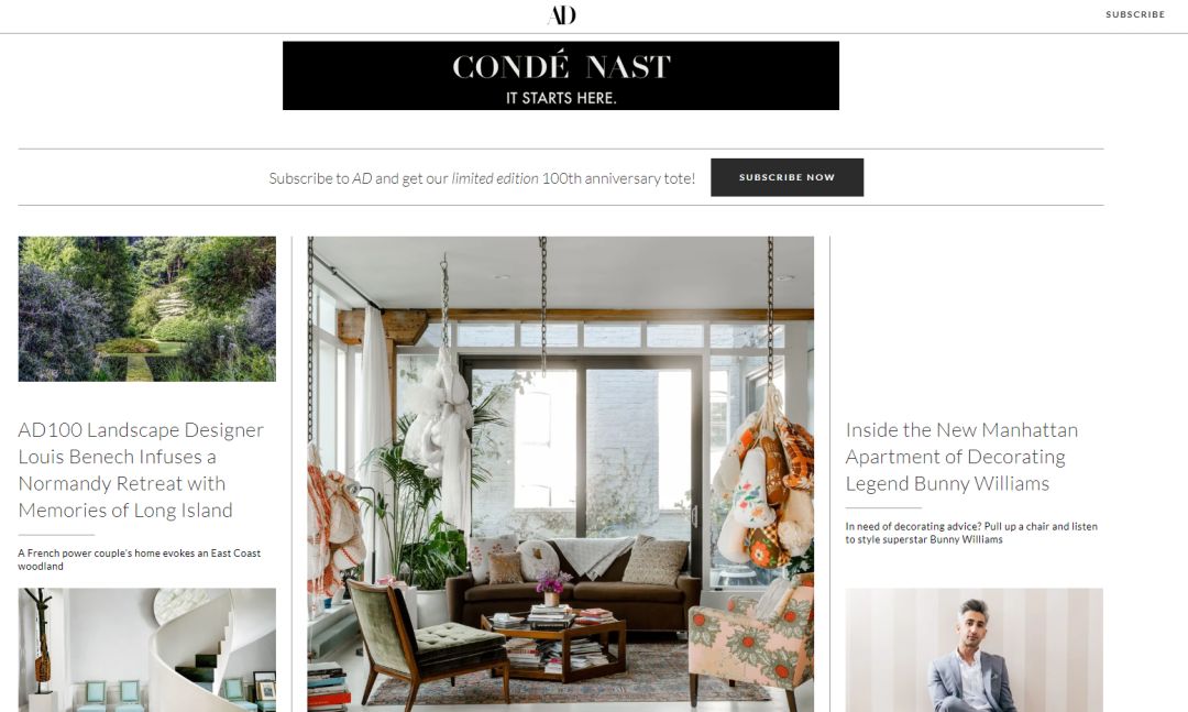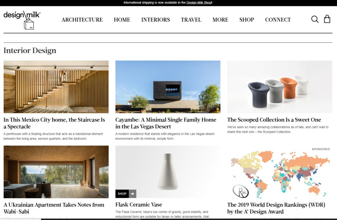 这是一本有百年历史的老牌建筑杂志,线上内容质量依然有保证。不仅有室内设计,还有建筑设计、艺术活动、生活方式等介绍。他们也提供邮件订阅。