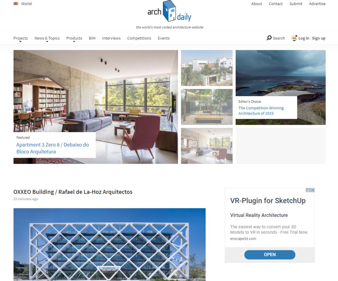 ArchDail 是世界上访问量最大的建筑、室内设计网站,收集了众多出色的设计案例。除此之外,还有建筑相关的新闻、比赛、活动等。