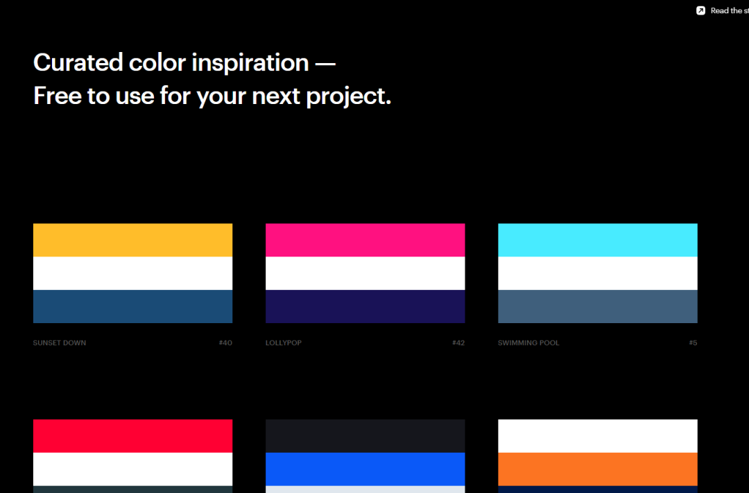 这是一个配色组合网站,特别之处在于它只选用2到3中颜色设计出一个配色组合,可以通过网页快速预览,直接复制颜色值。